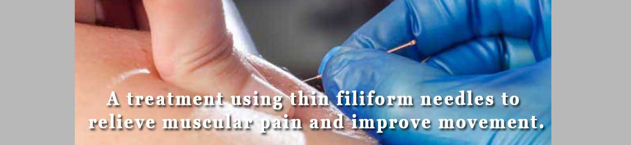 Dry needling sometimes referred to as “Intramuscular Stimulation or Intramuscular Manual Therapy” is a treatment using thin filiform needles to relieve muscular pain and improve movement. Dry needling benefits are it treats dysfunctions in skeletal muscle, fascia, and connective tissues. Needles are placed in myofascial trigger points, taut bands of skeletal muscle located within a larger muscle group (American Physical Therapy Association).